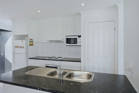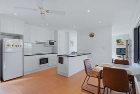 The master bedroom includes a walk-in robe and private ensuite, while the second bedroom offers flexibility for guests, a home office, or additional living space. The modern kitchen is both sleek and practical, featuring ample storage and a dishwasher to suit everyday living.
