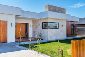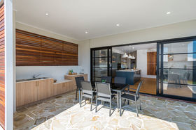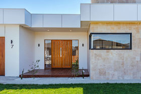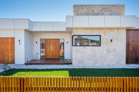 You are welcomed by the impressive Travertine façade, Merbau decking, exposed aggregate driveway and eye catching hardwood features.